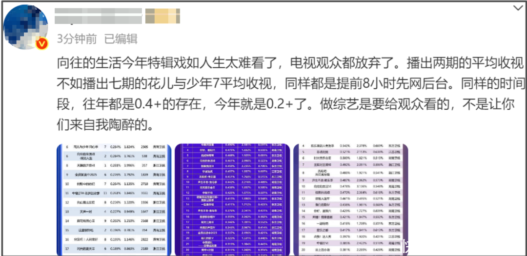要知道新一季《向往的生活》的收视可是一度跌破0.2%了呀,如今能够回升到0.24%,虽然还是挺低的,但至少证明了一点,那就是观众还是喜欢《向往》原本的风格。
